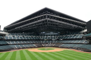 - 北広島市役所 5F 展望デッキよりボールバークを望む