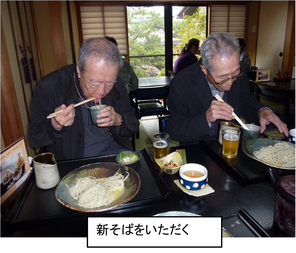 (新そばや、ビール等を飲みながら暫し懇談。人気の店なのか、懇談中も次々とお客が到来)
