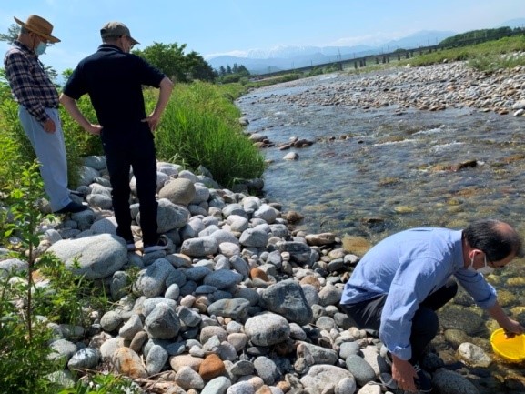◆快晴のなか綺麗に澄んだ川で支部員4名が参加しました