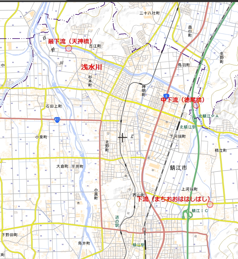 実施場所 一級河川 浅水川(鯖江市、越前市)