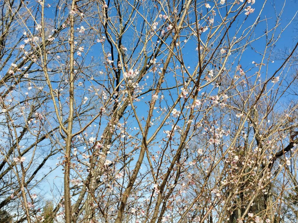 - 寒緋桜(カンヒザクラ)が咲いている:山頂にて