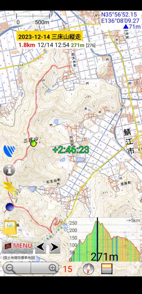 - 行程 西大井町集落センター(駐車場)~152mピーク~山頂~石生谷【せきしょうだに】トンネル入口(鯖江市側)