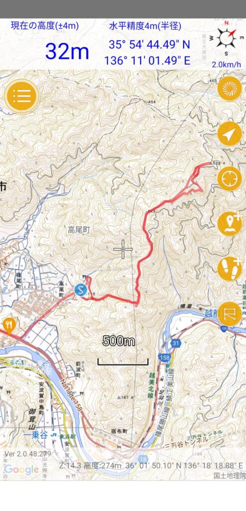 - 今回のコースをさらに延長して篠尾町へ降りるように道を復活整備すれば(地元の人の話では、昔はよく登られていたようです)、福井市近辺では、お手頃な周回コースになり、コース整備の候補として有望ではと思いました。