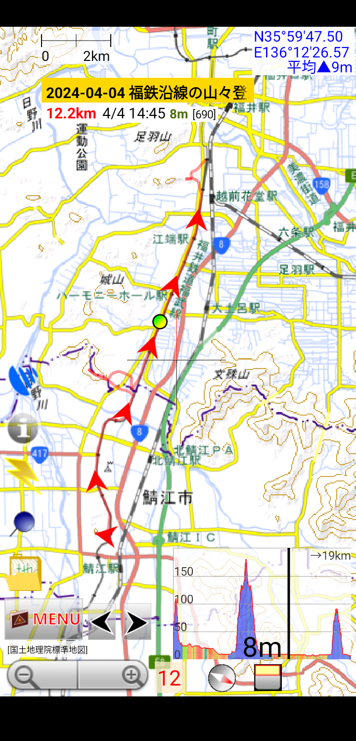 - 行程 西山公園駅~長泉寺山往復、三十六社駅~経ケ岳往復、花堂駅~八幡山~赤十字前駅