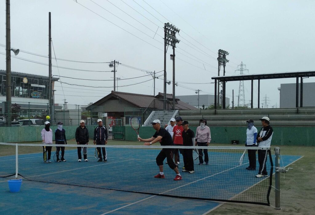 - 概要 本年も昨年に引き続き先週から小林明男さん及び五十嵐純一さんによるテニスレッスンを始めました。今年のねらいは、『回転をかけたボールを打とう!』です。先週4/23(火)は、第一日目 小雨の中、サーブ&リターンの練習でした。