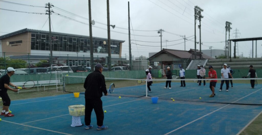 - 所感 昨年コーチして頂いた小林先生(女子プロテニスプレーヤ育成)が春から当会に入会されましたので、自前にてレッスン開催が出来るようになりました。また、日頃教えて頂けるようにもなり、心強い限りです。本日は、ボレーがメインになり、ラケット面の使い方等、一球一球、球出しによる指導を受けました。面に対する意識が弱いこと及びバックハンドボレーにてすべての球に対応する体験など楽しく新鮮に受講できました。(畑下 正和)