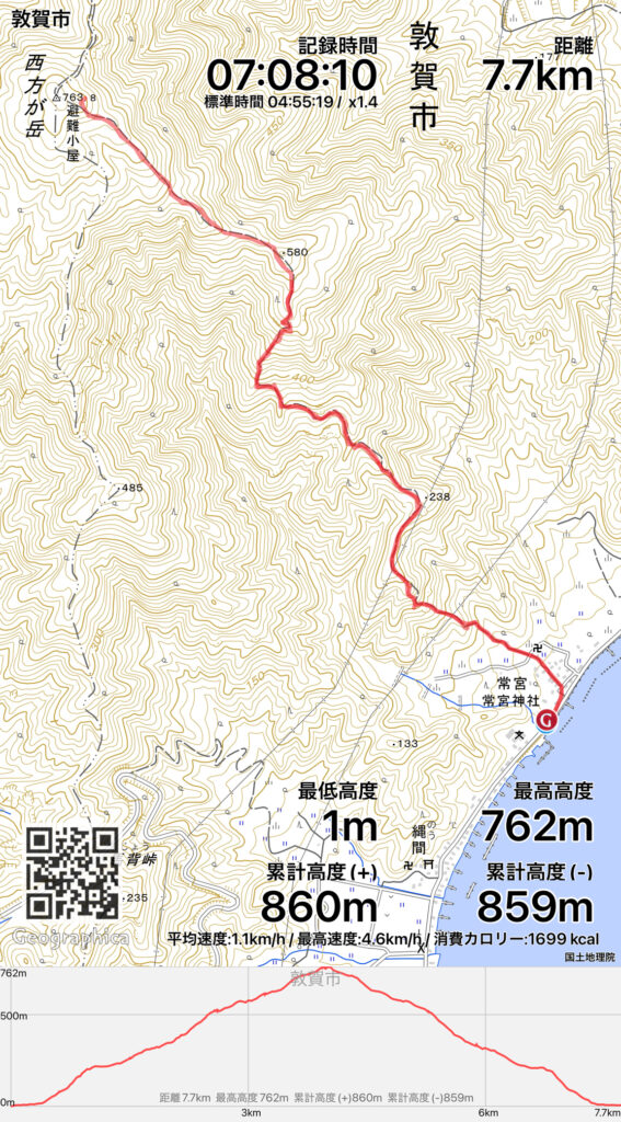 - 行程 登山口(常宮神社)~奥の院~銀命水~おうむ岩~西方ケ岳山頂 往復
