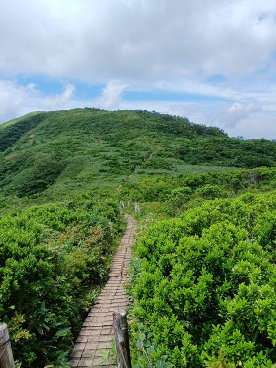 - 山頂から避難小屋までの丸味を帯びた山容及び地塘が気に入っており、今回も楽しく散策が出来ました。ニッコウキスゲは時期が当然遅く、チラリと咲いてはいました。