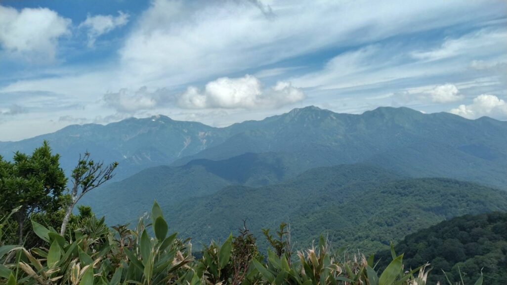 - 梅雨の合間でしたが、ラッキーに天候に恵まれ行くことができました。この山域は、来月行く白山の向かい側で、今回つぶさに観察出来ました。