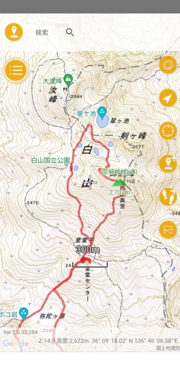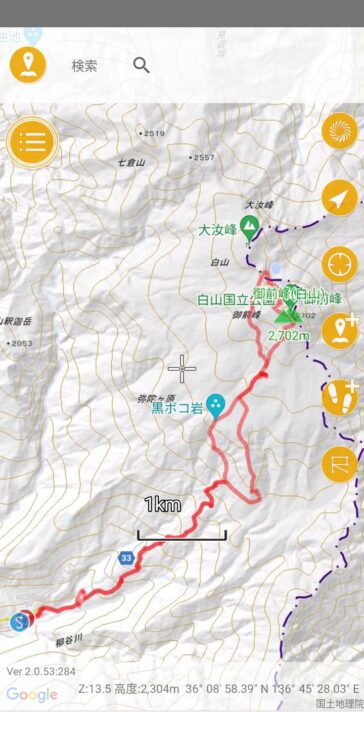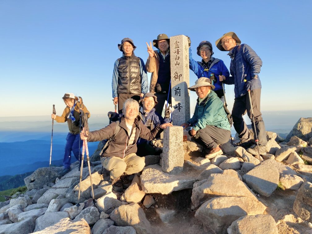 - 行程 8/1:登山口(別当出合、砂防新道)~甚之助避難小屋~黒ボコ岩~弥陀ケ原~白山室堂, 8/2 白山室堂~御前峰(ご来光)~お池めぐりコース~室堂平~展望歩道~アルプス展望台~南竜道~砂防新道~登山口