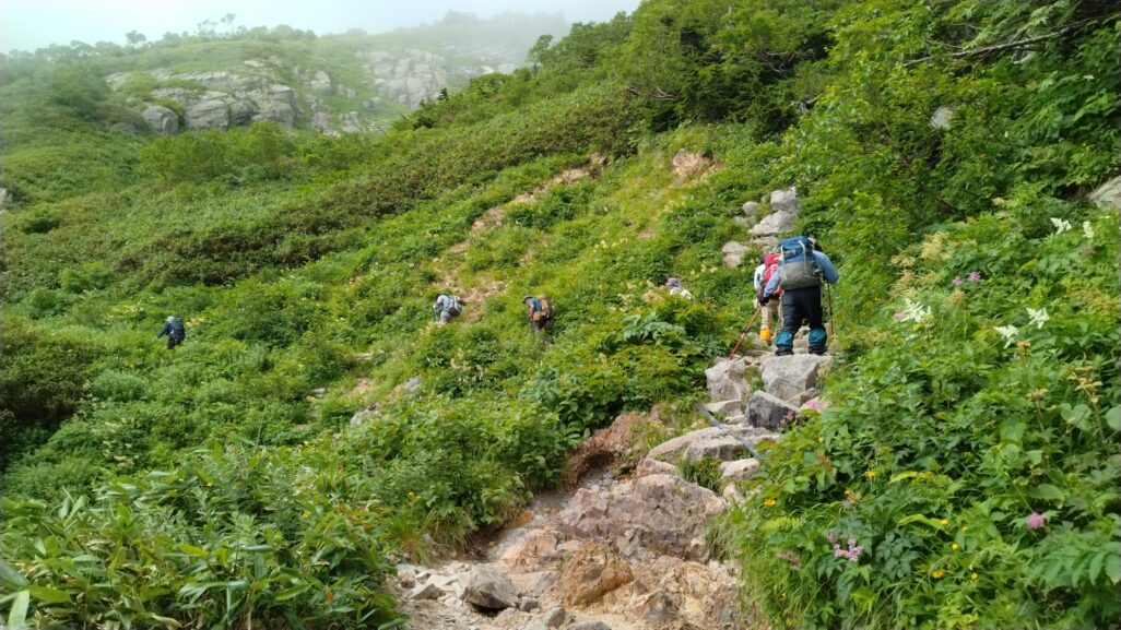 - 今回の山行は、通常の例会と比べて標高差が倍近くあり(1600m)、一日目は登りのみ(降りなし)、二日目はその逆で、降りのみ、体力的にカナリ負荷がかかりました。皆さん宿にてほぼ眠れなかった事もあり、身体的にきつかったですが、何とか無事下山出来ました。