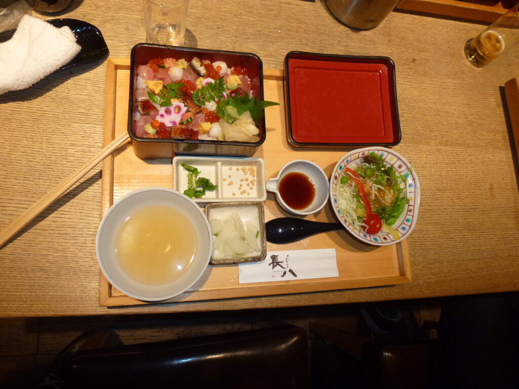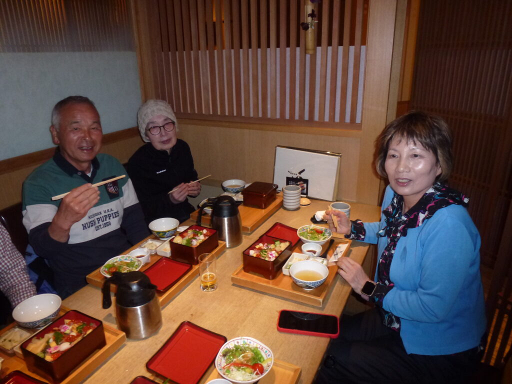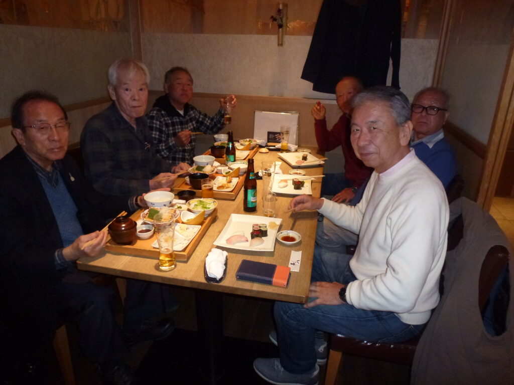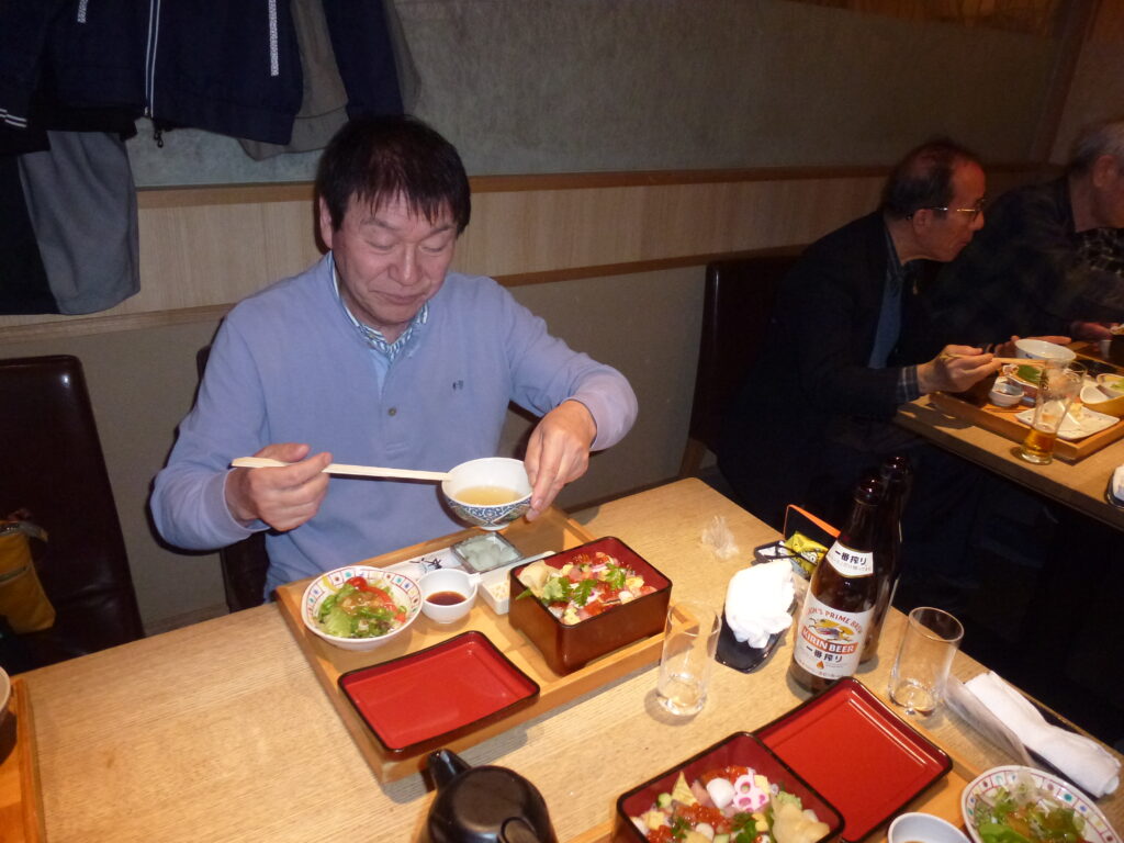 4. 「長八」で、お寿司や肉料理等、ビールを飲みながら楽しく歓談をした。・・ここでも多くの外国人が食事をしていた。