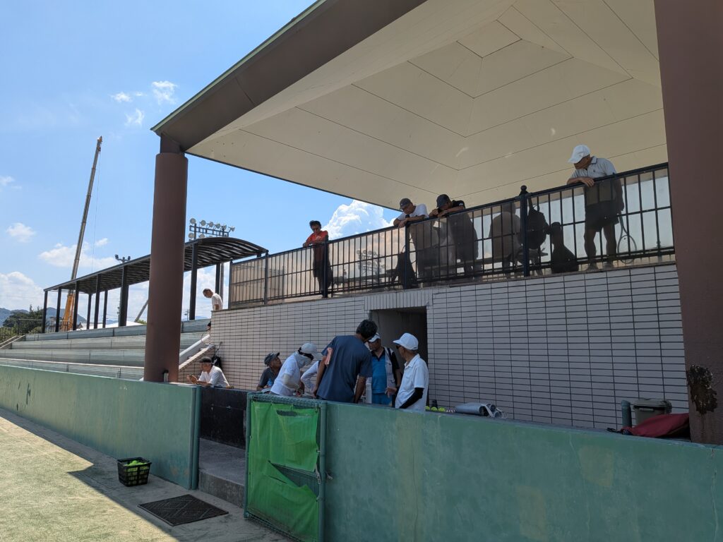 - 学校が夏休みに入ったこともあり、コート中高生の部活・大会で利用されるようになり、普段に比べて更に賑やかです。それにしても暑さものともせず中高生を含めて皆さん熱心に試合・練習をしています。