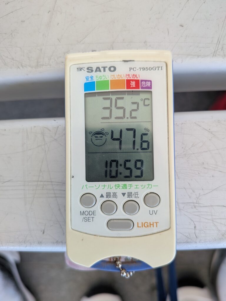 - 写真にあるように、夏本番から見ると温度低いですが、体感としては暑く感じられます。