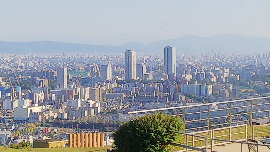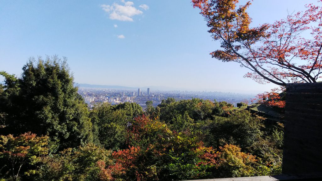大阪平野から阪神間を一望の眺望を見渡し、やや早めの紅葉を愛で、