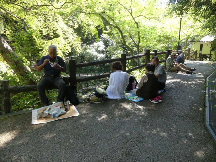 - ベンチは先客で一杯 道端で昼食
