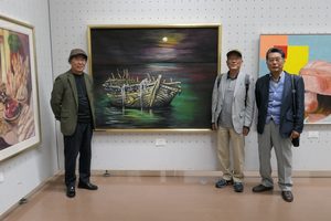 ◇松村さんの今年の作品は、3年続いた「錦秋シリーズ」を終えて、新しいテーマで100号作品『北の海から』です。月光が青く冴えわたり・・・海に輝いて・・・浮かぶ船が一艘・・・ひとことで云って「すごく幻想的な絵」なのです。題名とはまったく違うイメージの作品に仕上がっていました。