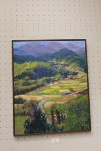 ◇見ていた二人の女性が「きれいな作品…」と感動していました。隣に展示してある絵が、明るい色彩画なので、よけいに、幻想感が際立って感じられるのでした。