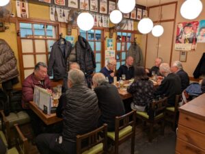 2025年初の懇親会は、世話役 垂谷正夫さんの乾杯で始まり、中川幸治さんの音頭でお互いの健康を祈念し「一丁締め」めでたくお開きとなりました。参加者17名 累計381回目 の懇親を深めました。