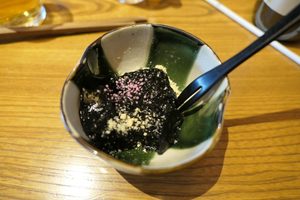 ◇「店長おまかせコース」は、蓮根湯から始まって、蓮根まんじゅうと、蓮根を使った料理が続きます、最後に竹炭タケズミ黒砂糖の「蓮根黒わらび餅」にコーヒの締めでした。ただし、蓮根は加工され工夫された料理になっていて“穴”の空いた蓮根の姿はどこにも見あたらない・・・本当にこれ蓮根?・・・と疑心暗鬼になる人も出る始末でした。