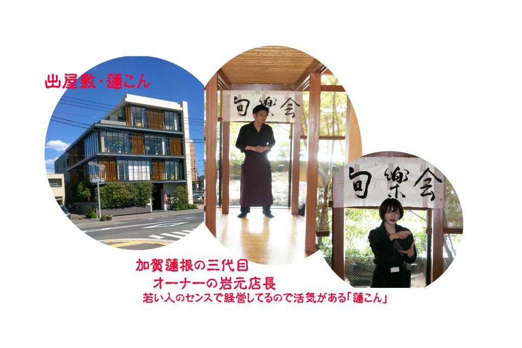 ◇今回の『蓮こん』は、出屋敷らしからぬ高級感で蓮根への徹底的なこだわりの店だと地元の新聞記事にも載った、ご当地グルメ・人気抜群のお店です。若いオーナー店長の岩元さんは祖父の代から続いた加賀蓮根の商売人とかで開店して12年目・・・なんとウイークディでも満席の商売繁盛にびっくりしました。