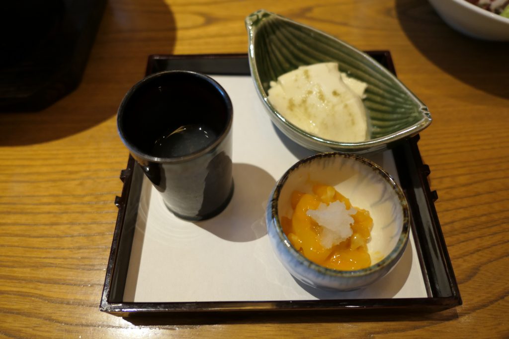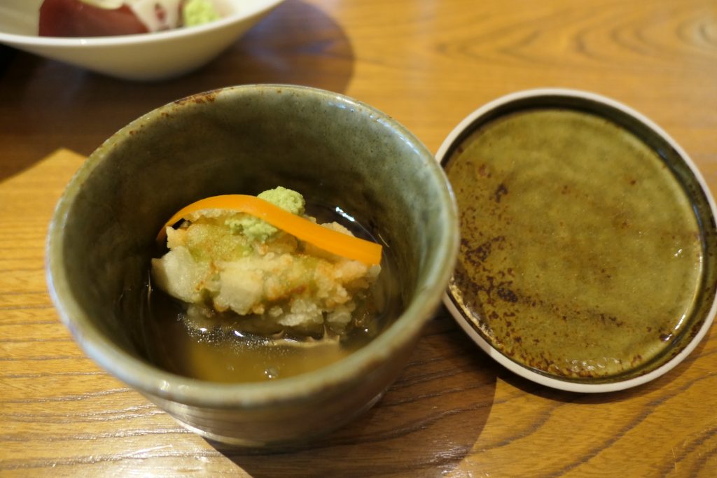 - ⑤前菜「蓮根湯と季節鉢二種」