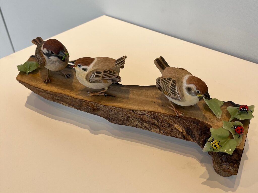川西市在住の横山豊さんのバ-ドカービング「雀の親子とてんとう虫」が、 第64回宝塚市展の彫刻・立体造形の部門にて入選されました。