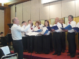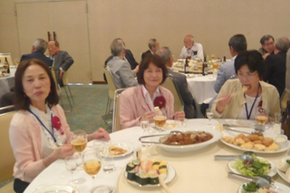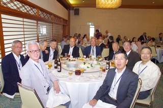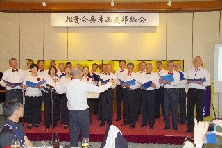 第3部の懇親会は、村瀬通三様の乾杯で開演、テーブル毎、さらにテーブルを跨いだ懇談も弾み、終始和気あいあいとした懇親会となりました。 最後は『SWING』合唱団の「花」「四季の歌」演奏に加え、アンコールに応えて「ふじの山」を披露。締めとして恒例の全員で「琵琶湖周航の歌」を大合唱しました。