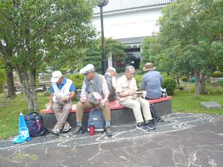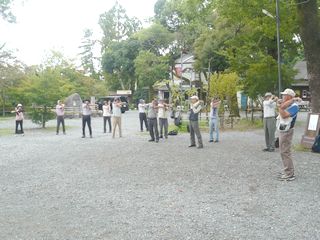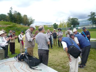 11時45分に勝龍寺城公園に着き、集合写真を撮った後、昼食にしました。12時30分から二手に分かれ、ガイドの方から勝龍寺城のお話や展示室の説明を聞きました。特に来年の大河ドラマの主人公明智光秀、細川ガラシャ夫人のお話は大変興味深く伺いました。