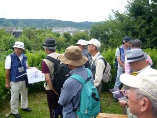 引き続きガイドの方に勝龍寺へ案内頂き少し説明を聞いたあと、13時30分に恵解山(いげのやま)古墳に着き、古墳に上がって四方の景色を楽しみました。