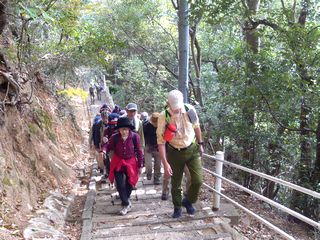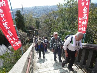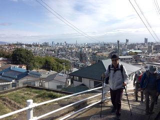 11時35分「高取山山頂」に到着し、そこで昼食としました。昼食後、神戸市街をバックに集合写真を撮り、12時15分に 「高取神社」に向かいました。「高取神社」で神社をバックに集合写真を撮り、12時25分に「安井茶屋」に向かいました。 12時40分に「安井茶屋」に到着し、トイレ休憩後「長田神社」に向かいました。13時35分に「長田神社」に到着し、そこで解散としました。今回は、久しぶりの難易度3.5の厳しい登りでしたが、一人の脱落者もありませんでした。 皆さん、お疲れさまでした。