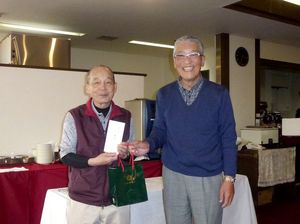 終了後の表彰式ですが、今回は新型コロナウイルス対策として、広い食堂でテーブルごとに離れて座り、表彰のみを行い15分ですませました。また恒例の前年(2019年)の年間優勝者4人(1名は今回不参加)による年度賞決定戦も行われ、横田 省三様が、見事!昨年度の年間チャンピオンに輝かれました。
