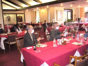 終了後の表彰式は、今回も新型コロナウイルス感染症対策として、広い食堂テーブルごとに離れて座り、表彰と、次回以降の開催参加手続き等の説明を短時間で簡略して行いました。又、恒例の前年(2020年)の優勝者2名によるグランドチャンピオン決定戦もあり、辻原敏生様が見事王者に輝かれました。