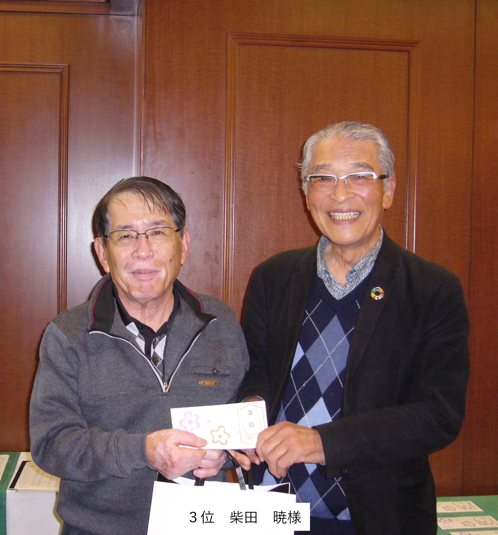 表彰式は、感染対策の施されたコンペルームで、佐伯会長挨拶の後、上位入賞者に商品が手渡されました。その後、優勝された菊池様からスピーチを頂きました。
