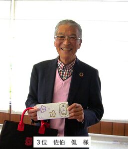 表彰式は、感染対策の施されたコンペルームで、佐伯会長挨拶の後、上位入賞者に商品が手渡されました。その後、優勝された筒井様からスピーチを頂きました。