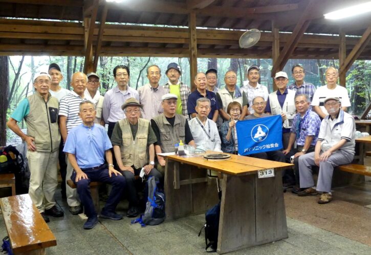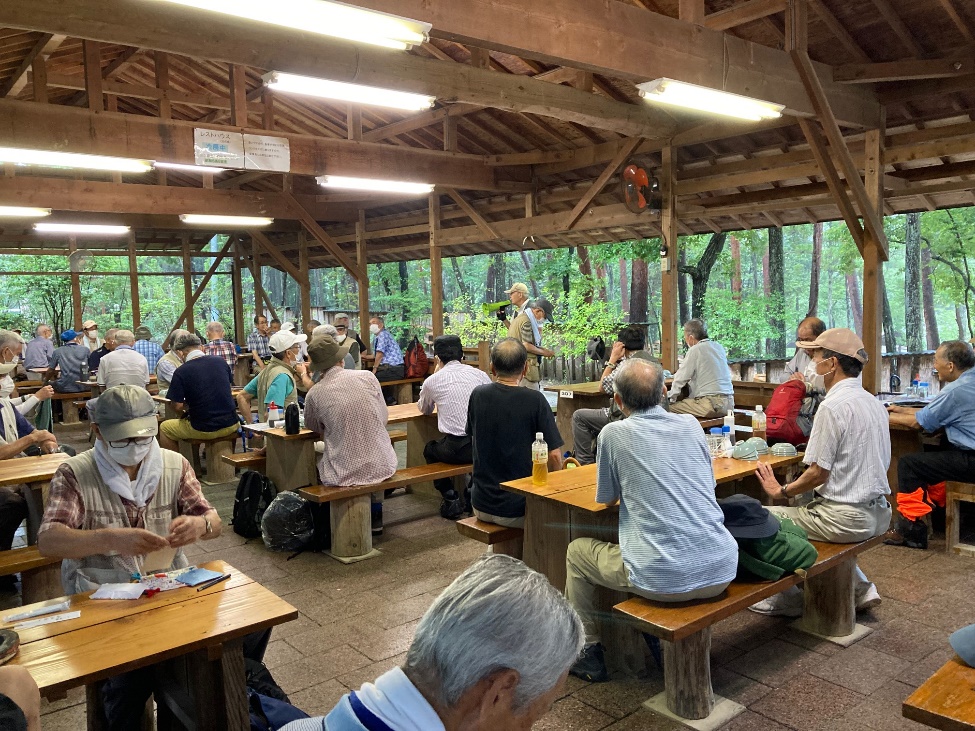 今回は、第298回「有馬富士公園で椎茸園バーベキュー大会」と題し、恒例の3支部(兵庫西、兵庫東、北大阪)合同の例会です。前日は雨の予報で実施するかどうか大変悩ましかったのですが、新三田駅からバーベキュー会場まで送迎バスでピストン運転をして頂けることになりましたので、雨の中でしたが実施をしました。参加人数は兵庫西が22名、兵庫東が32名、北大阪が5名の合計59名でした。