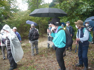 雨も上がり12時40分に「4等三角点」に向け出発し、しばらく歩いて「太陽と緑の道」に入りました。13時35分にこの道にある「4等三角点」に到着し、そこで記念写真を撮り休憩後、13時40分に「コンビニ」に向かいました。14時10分に「コンビニ」に到着し、そこで休憩し14時20分に「市民の森広場」に向かいました。