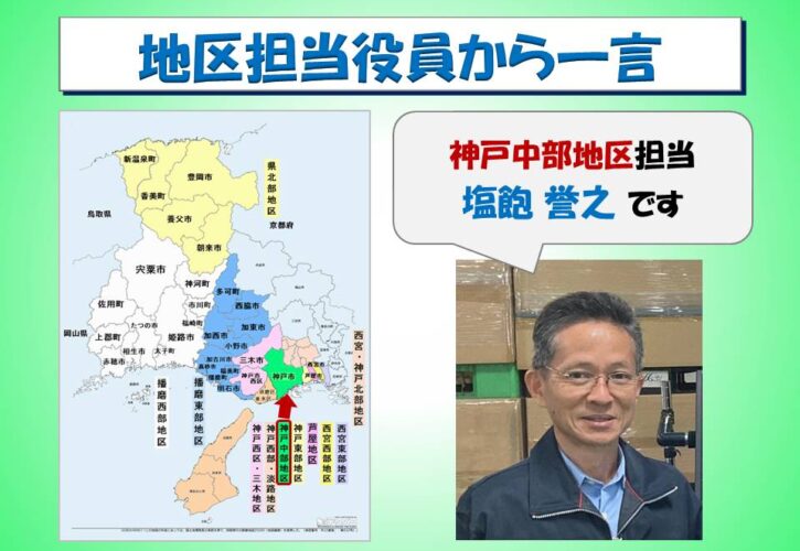 2022.12.5 役員から一言, 本部掲載 役員から一言(神戸中部) 地区担当の役員からの一言は次のページです。 ※松愛会の個人認証 ID/パスワードが必要となります。 役員から一言, 本部掲載 コメント: 0 2022年12月1日 4名の新入会員をお迎えしました前の記事 手作りブローチ教室を開催 (2022.12.4)次の記事