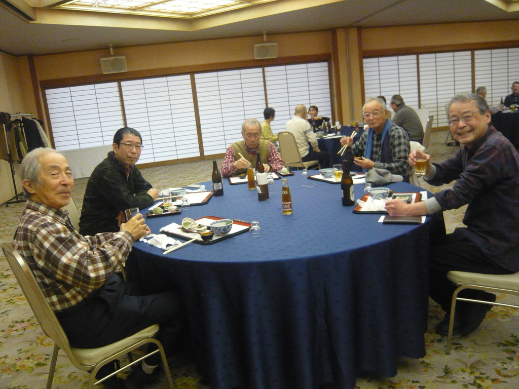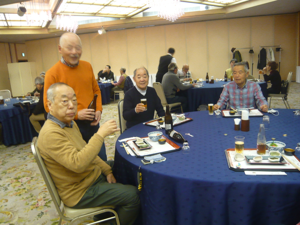 11時25分に「湊川神社」に到着し、参拝後11時45分に「楠公会館」で納会を開始しました。代表の挨拶後、最高齢者による乾杯を実施し、懇談を開始しました。1時間くらい懇談した後、傘寿のお祝い、誕生日のお祝い、及び皆勤賞等をお渡ししました。その後、ビンゴゲームを実施し盛り上がったところで、14時に閉会としました。