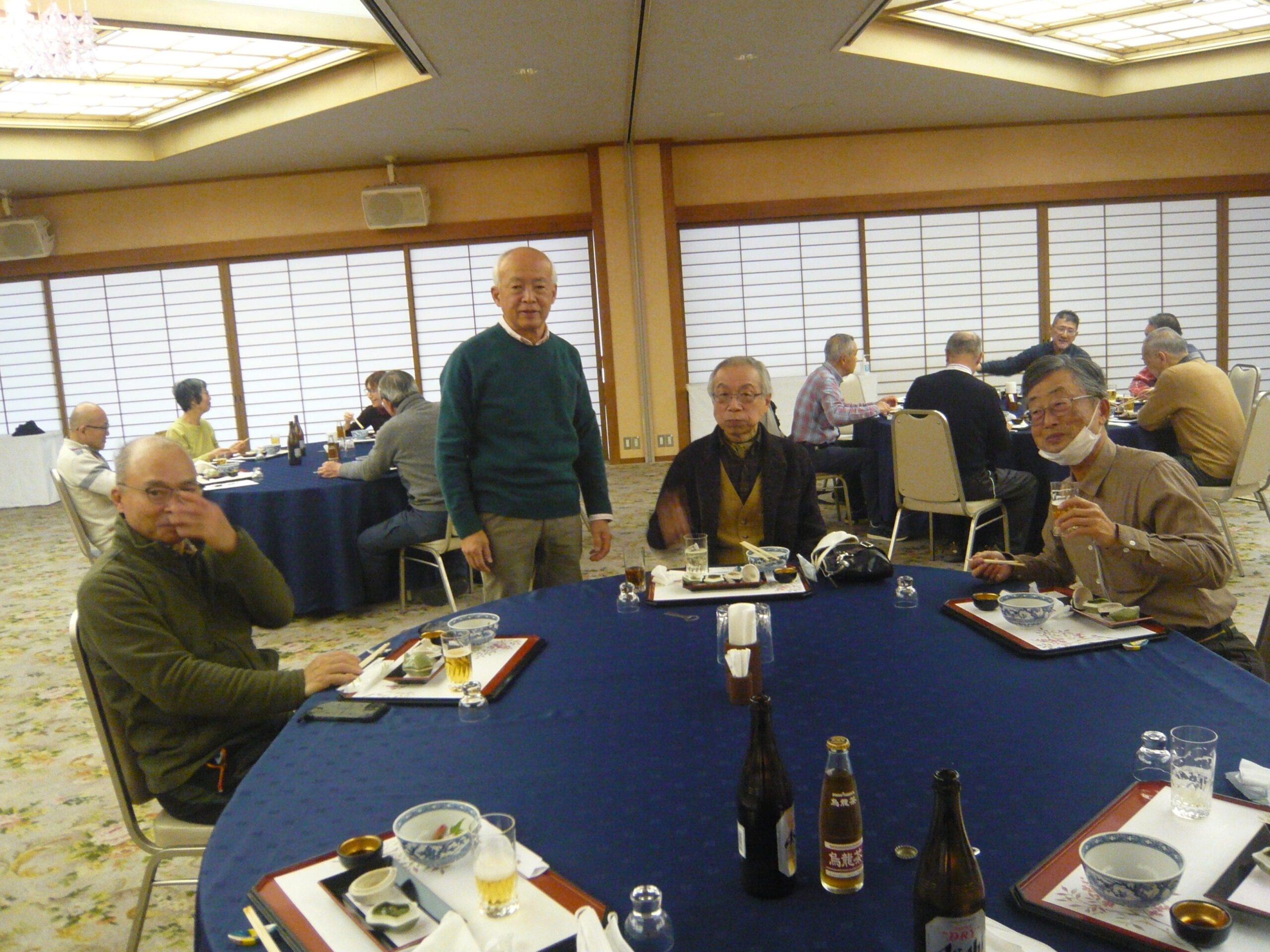 11時25分に「湊川神社」に到着し、参拝後11時45分に「楠公会館」で納会を開始しました。代表の挨拶後、最高齢者による乾杯を実施し、懇談を開始しました。1時間くらい懇談した後、傘寿のお祝い、誕生日のお祝い、及び皆勤賞等をお渡ししました。その後、ビンゴゲームを実施し盛り上がったところで、14時に閉会としました。
