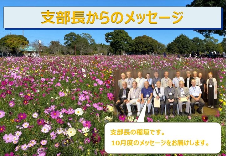 「暑さ寒さも彼岸まで」とはよく言ったもので、お彼岸以降ようやく過ごしやすくなってきましたが、会員のみなさまにおかれましては、お変わりございませんでしょうか。