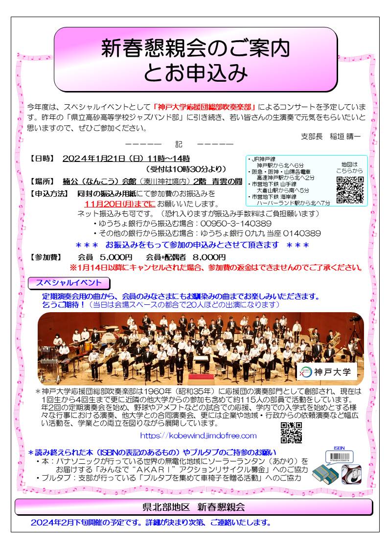 皆様のご住所に配達される 兵庫西支部便り11月・12月号 のP1に掲載しております「新春懇親会のご案内」を以下の通りホームページにも掲載します。