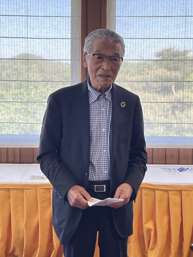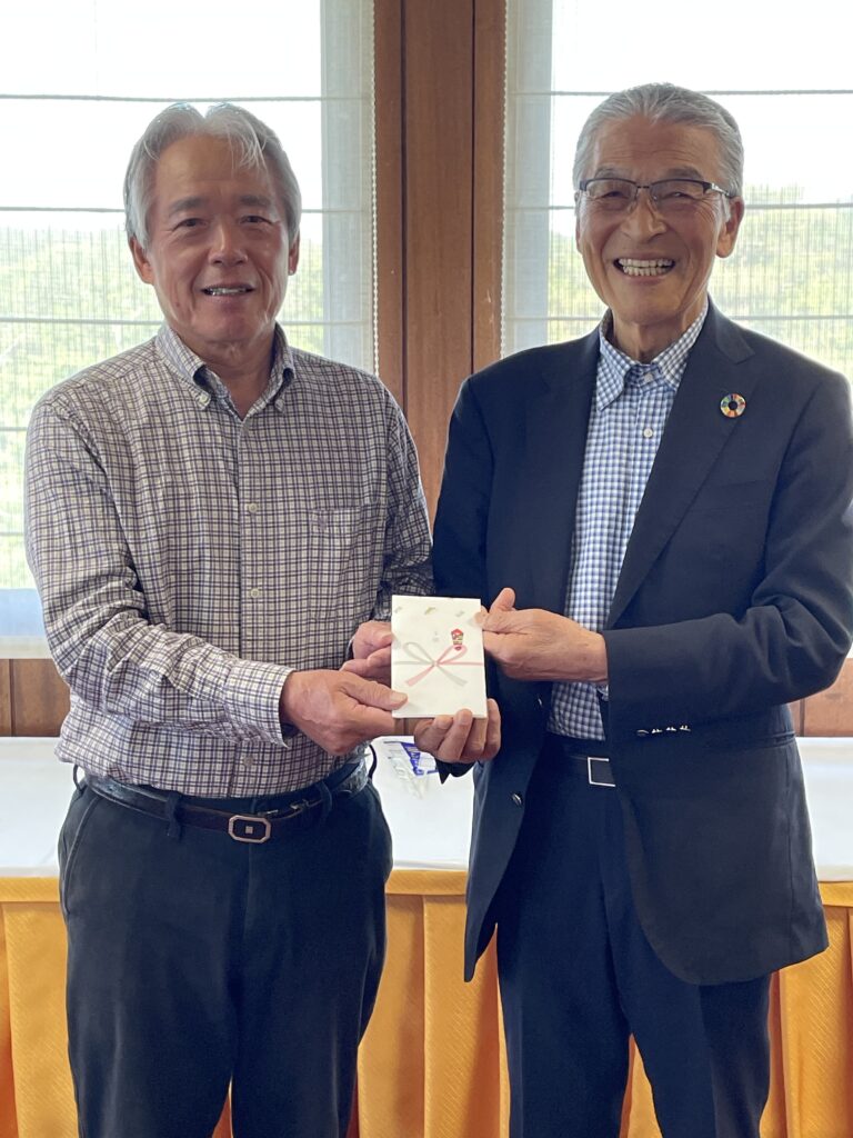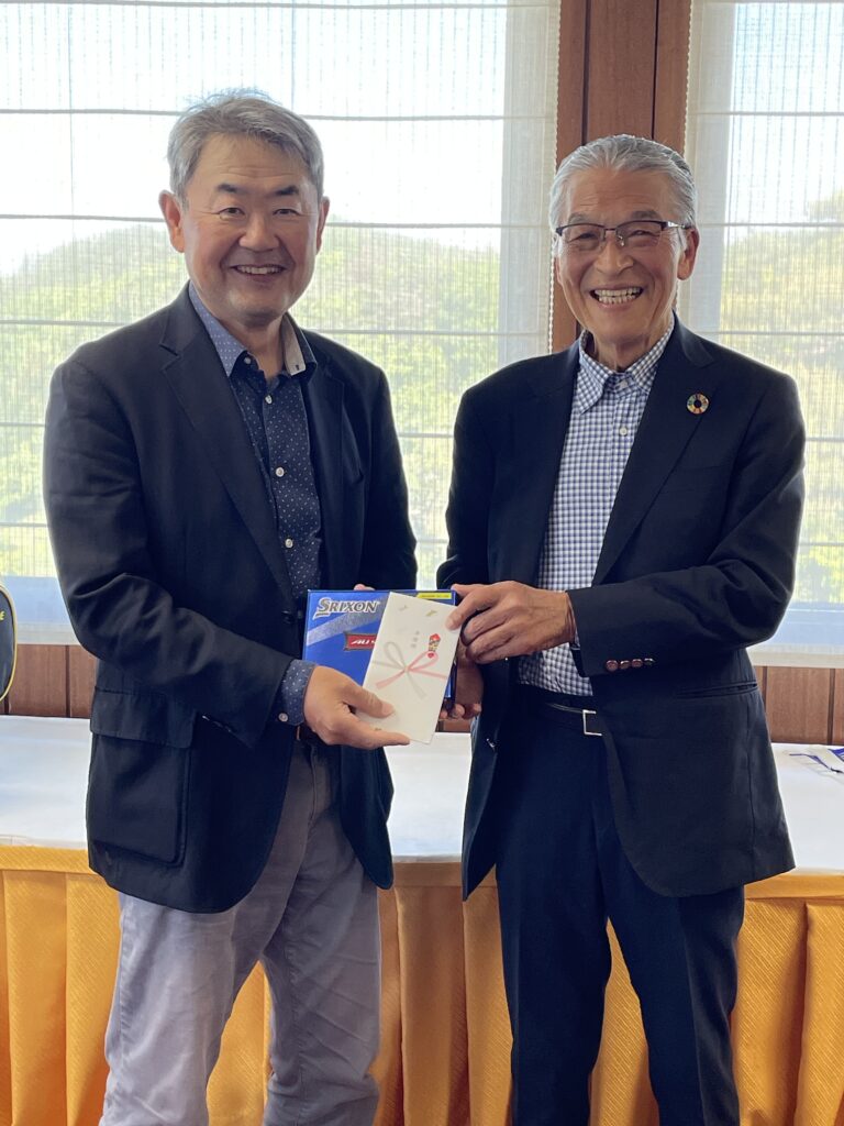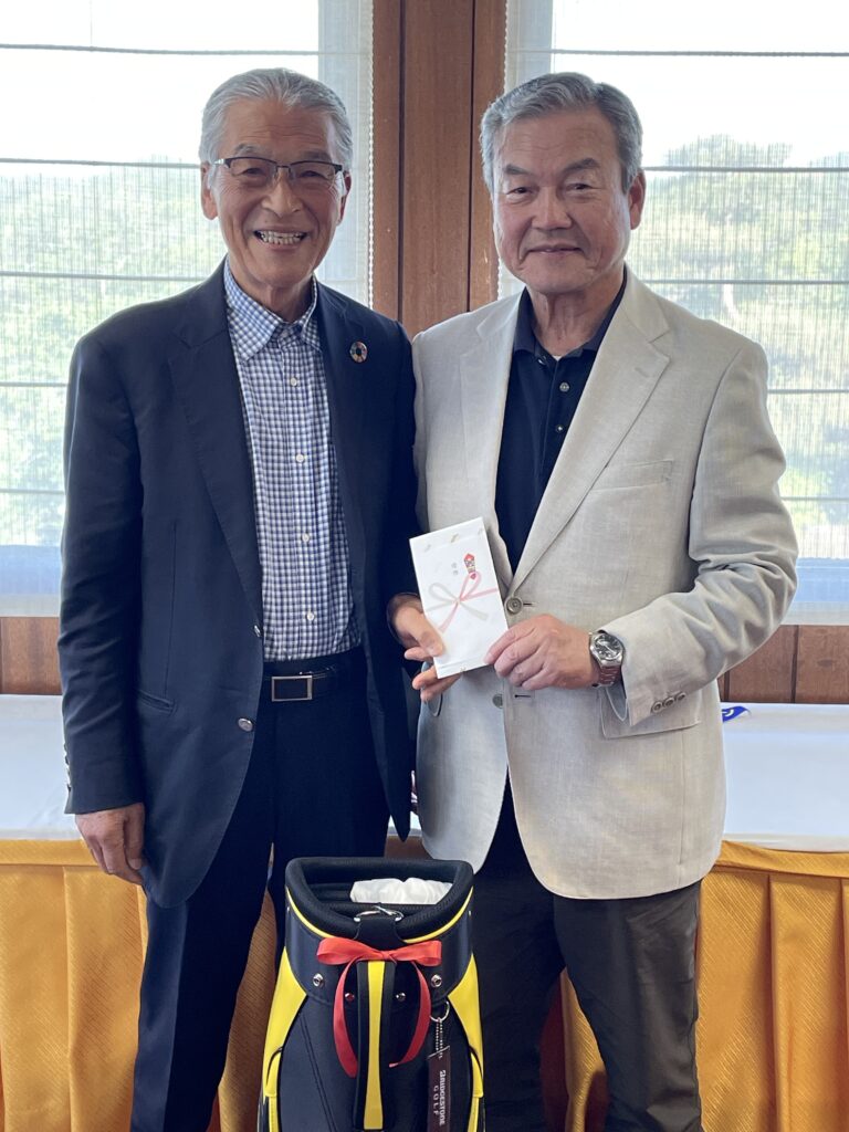 そのような苦戦をする中、山本 安広様がネット5アンダーの好成績で優勝され、表彰式において佐伯会長様より賞品の授与をいただきました。