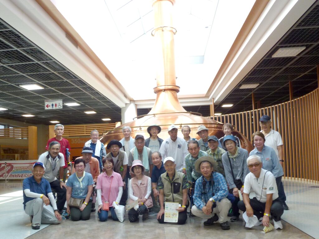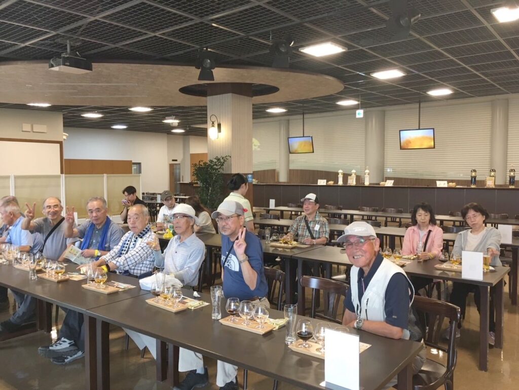 12時30~45分に「キリンビール工場」に向かい出発しました。途中、数回の休憩をとり13時30~50分に「キリンビール工場」に到着しました。Aグループは13時50分より、Bグループは14時30分から工場見学をし、ビール生産工程を学んだ後に、出来立ての生ビールをいただきました。Aグループは15時20分のキリンビールバスで、Bグループはいい時間のバスがなかったので16時00分にタクシーに分乗し、「JR三田駅」に向かい、そこで解散としました。