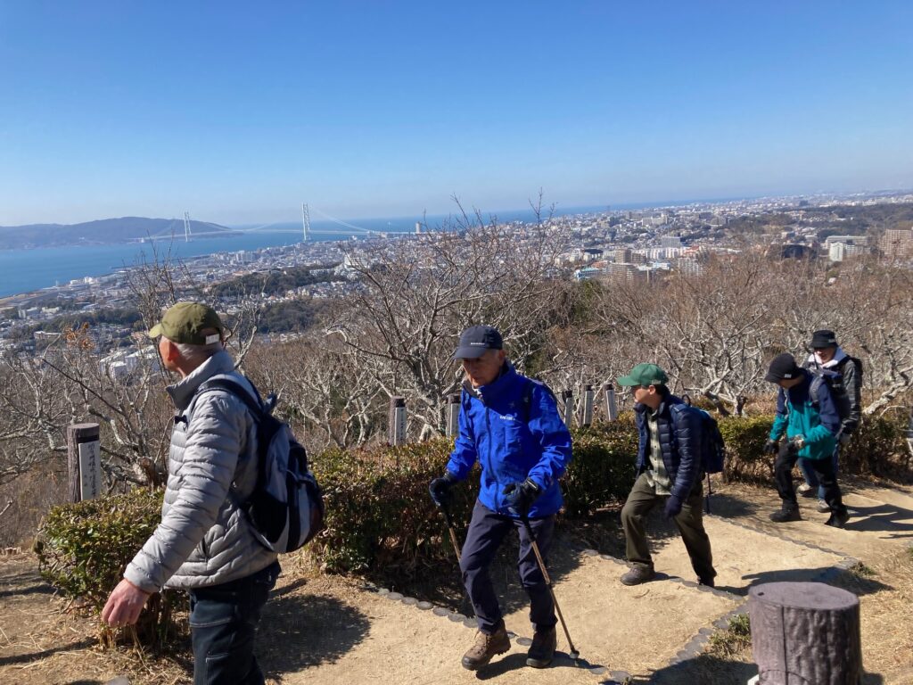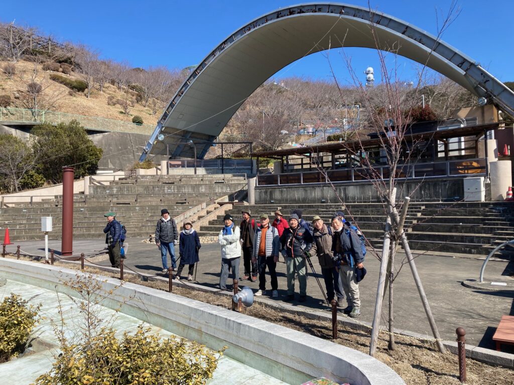 2月25日(火)に2月例会が開催されました。今回は、第326回「須磨浦山上遊園から一ノ谷下山・須磨海岸」と題し、晴天に恵まれ、会員14名、世話役6名、総勢20名と多くの方に参加いただきました。