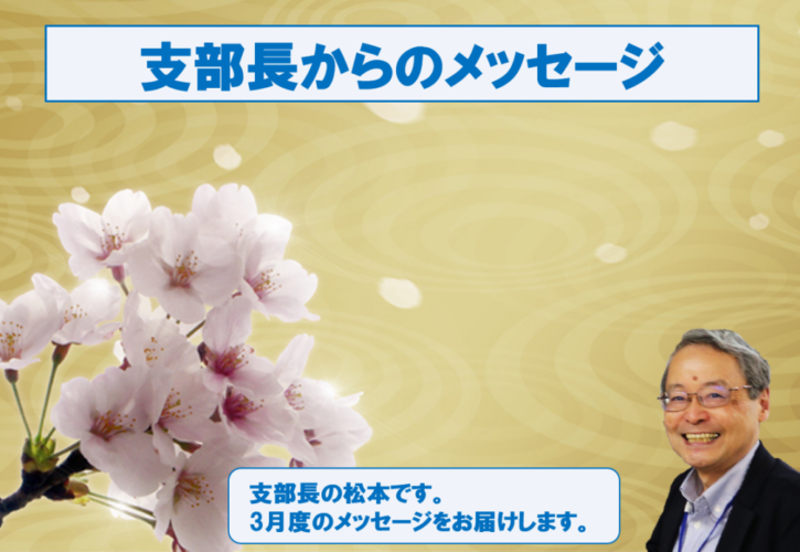 最後になりましたが、三寒四温で寒暖差の大きい日が続くようですので、会員のみなさまにおかれましては何卒ご自愛くださいますようお願い申し上げます。