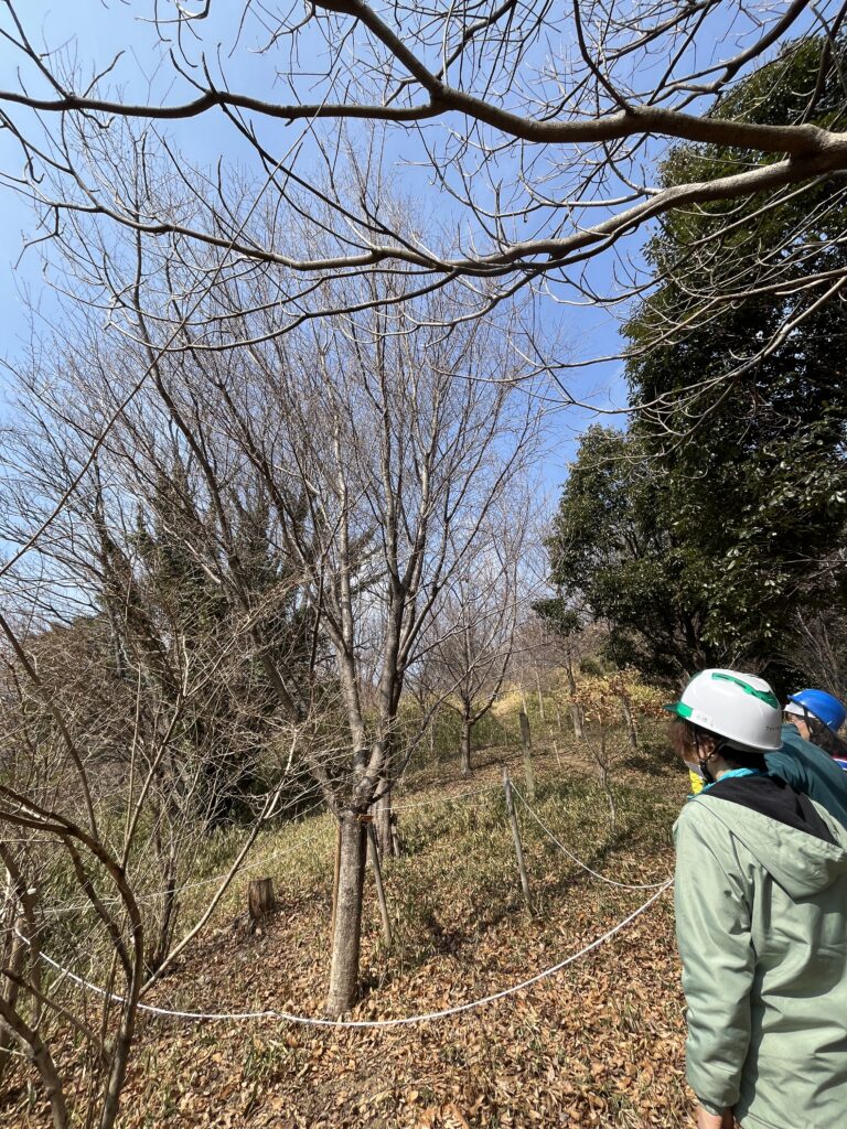 お昼の休憩のあとは、樹木教室に参加し、過去のこの植樹会で植えられた、いくつもの種類の桜の、大きく育った姿を見学しました。