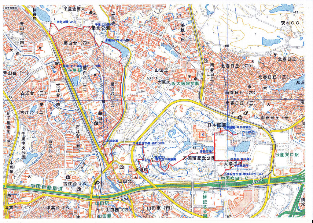 「阪急北千里駅」改札口に10時00分に集合し、「千里北公園」に移動し、代表の挨拶と諸連絡の後ストレッチを行い、10時25分に「水遠池」に向かいました。