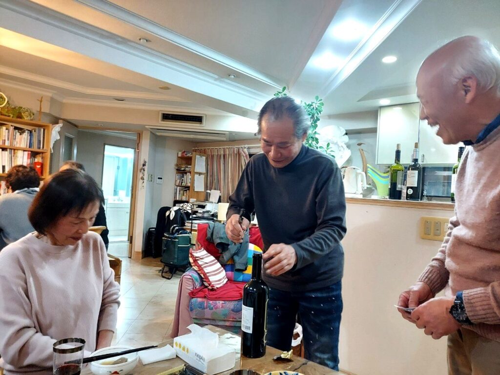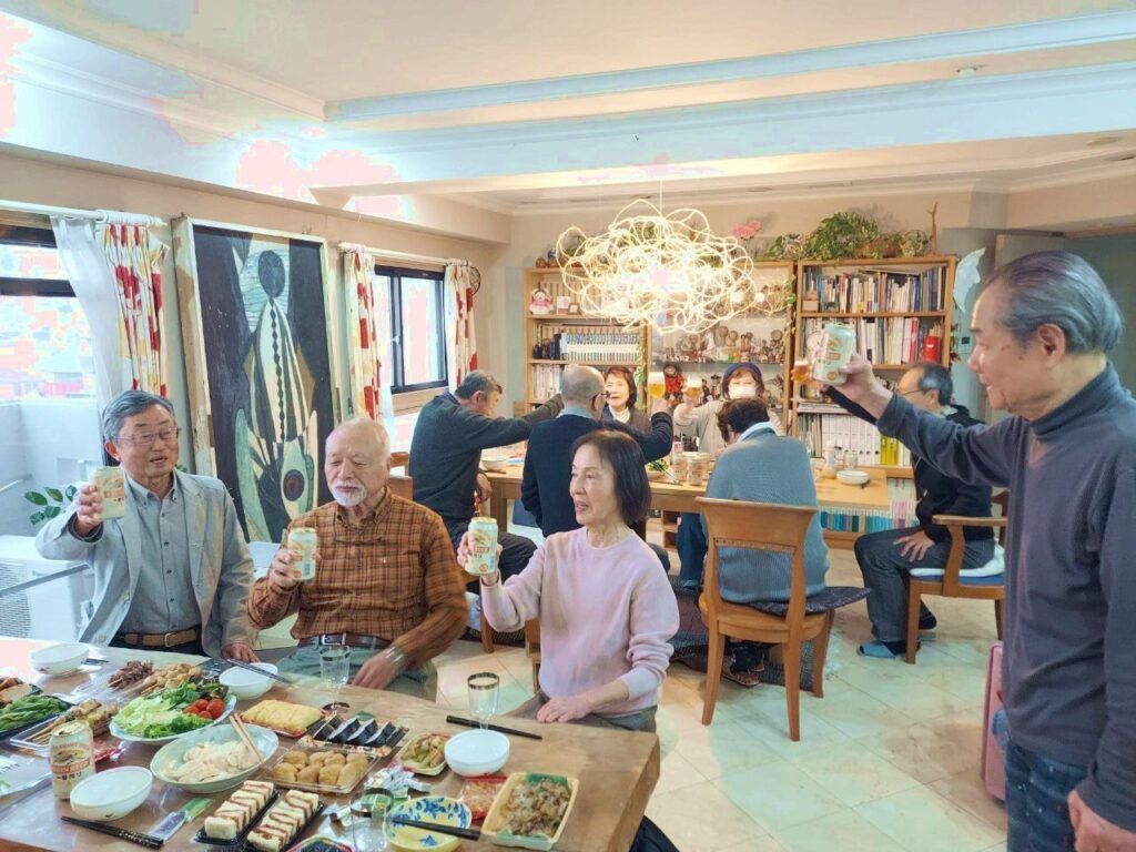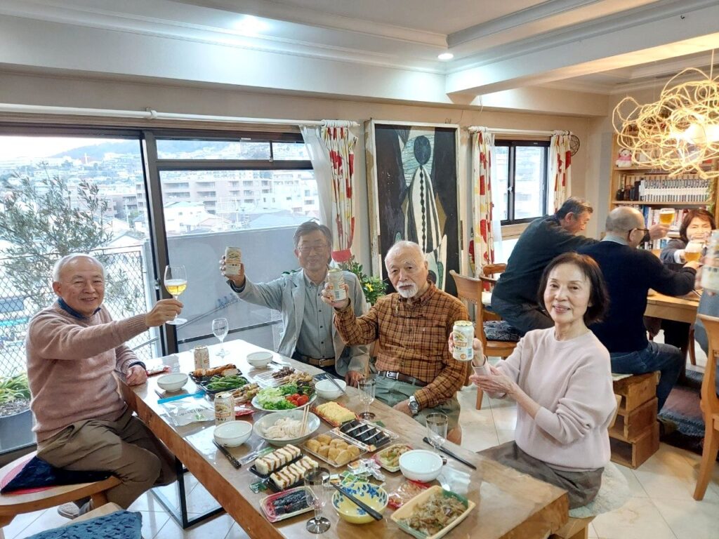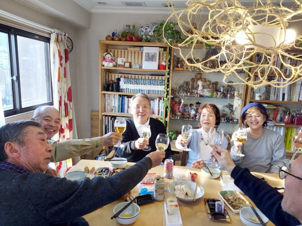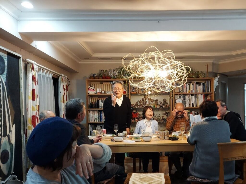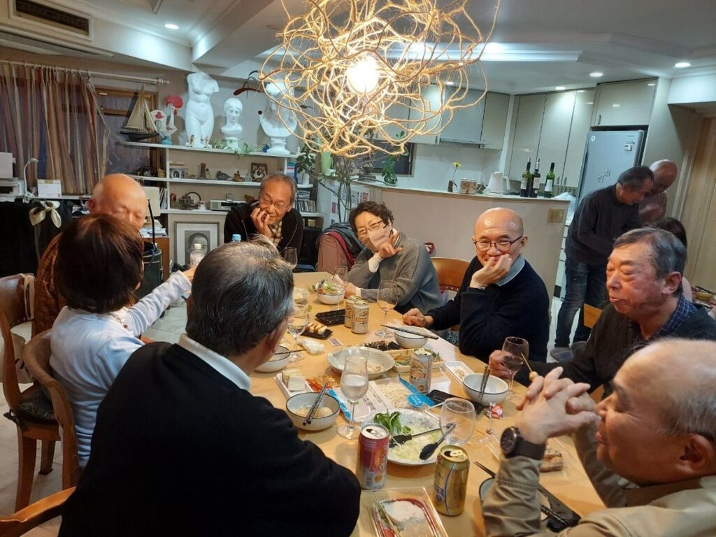 さて今回の練習後には恒例になりつつあるホームパーティ懇親会を行いました。昨年の夏に始めて今回で3回目となります。メンバーのご自宅に食べ物や飲み物を持ち寄って、ワイガヤのおしゃべりを楽しんでいます。ビールで乾杯したあと、今回も最高に美味しい自家製おでんの登場で、メンバーは大喜びでした。おしゃべりが弾む中、次にワインを開けまた乾杯をし、夜の帳がおりるころには盛り上がりも最高になりました。