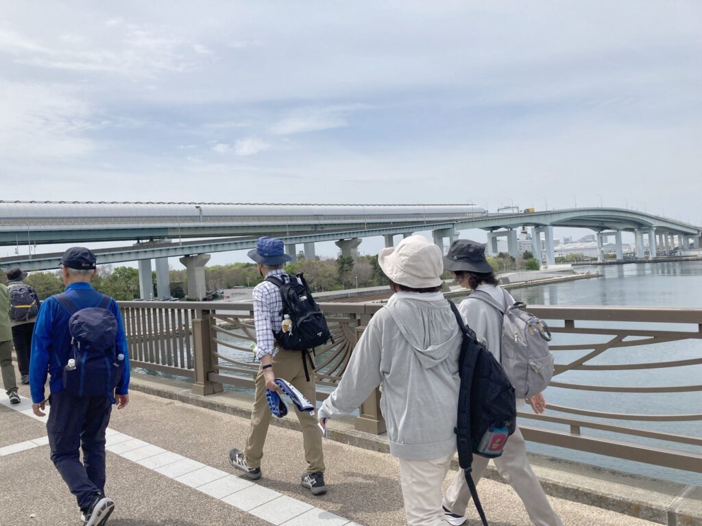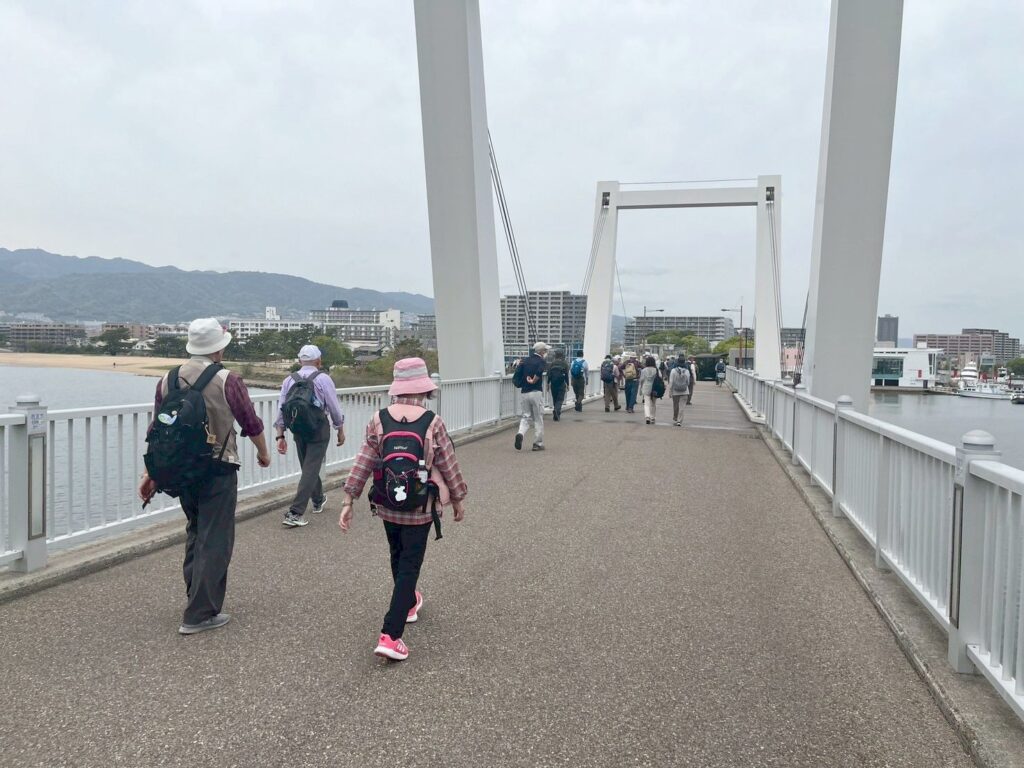 10時35分に「芦屋公園」に到着し、休憩後「芦屋市総合公園」に向かいました。11時15分に「芦屋市総合公園」に到着し、集合写真を撮り11時20分に「浜風大橋南」に向かいました。12時15分に「浜風大橋南」に到着し、そこで昼食としました。